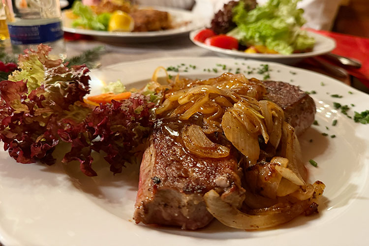 Genieße unsere reichhaltige bayerische Schmankerlküche mit einer großen Auswahl an Steakgerichten, vegetarischen Speisen und saisonalen Spezialitäten. Zum Abschluss verwöhnen wir dich mit hausgemachten Kuchen und Torten – frisch aus unserer Backstube. Dabei legen wir größten Wert auf Frische und Qualität all unserer Zutaten.